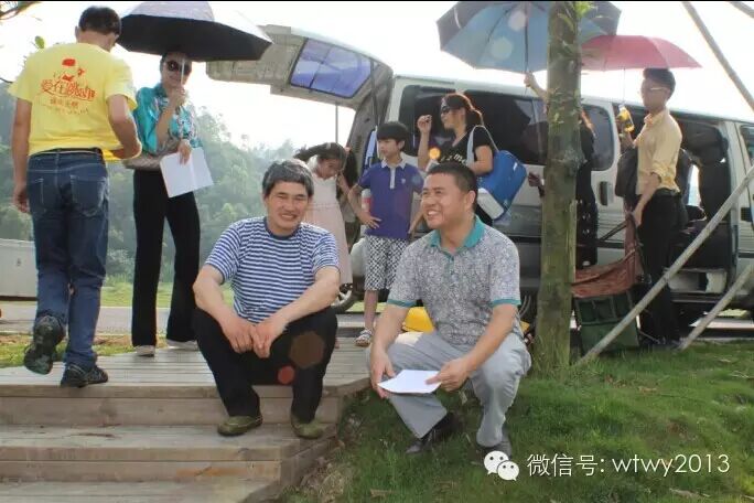 中间休息的时候大衣哥跟剧组成员一杨蹲坐车后阴影处休息乘凉。显露出他朴实的性格。
