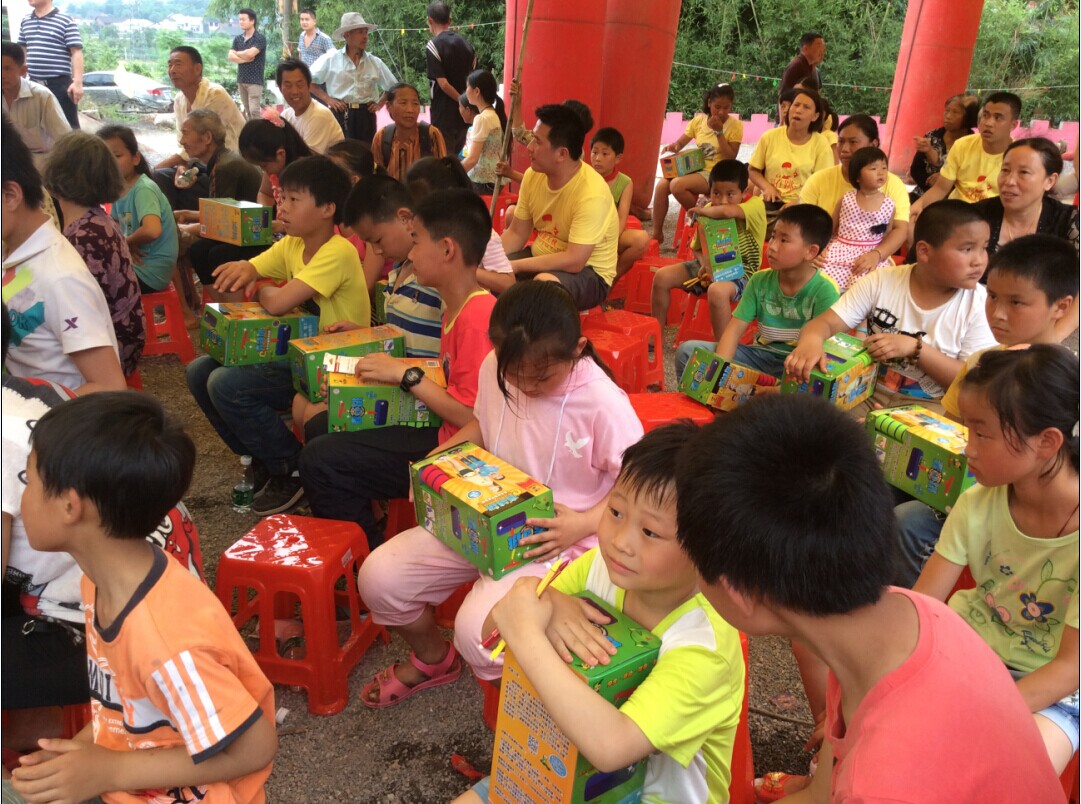 六一节当天,离湖南双峰县城40公里左右的龙安村“大家亭”很早就热闹起来了,100多名来自甘棠镇周边的留守儿童早早就跟爷爷奶奶赶来,他们羞涩地打量着来自深圳的客人。