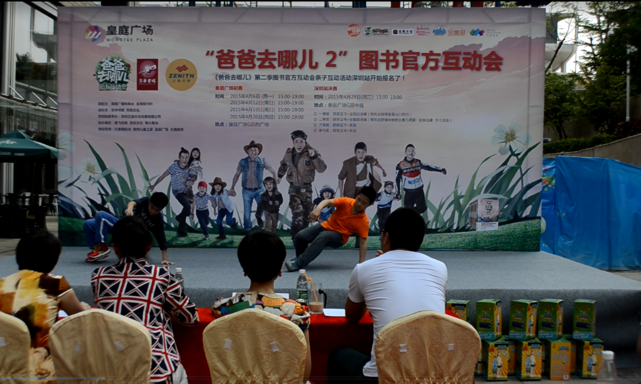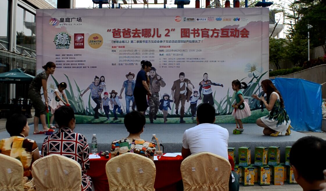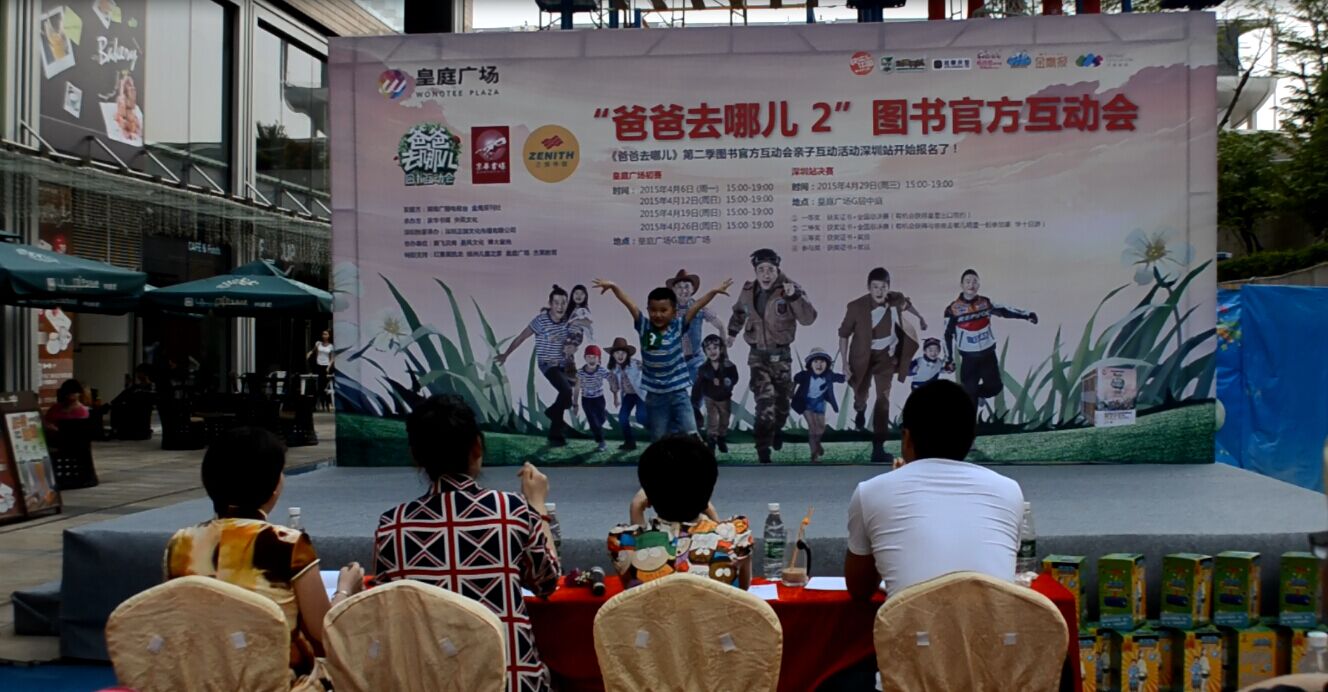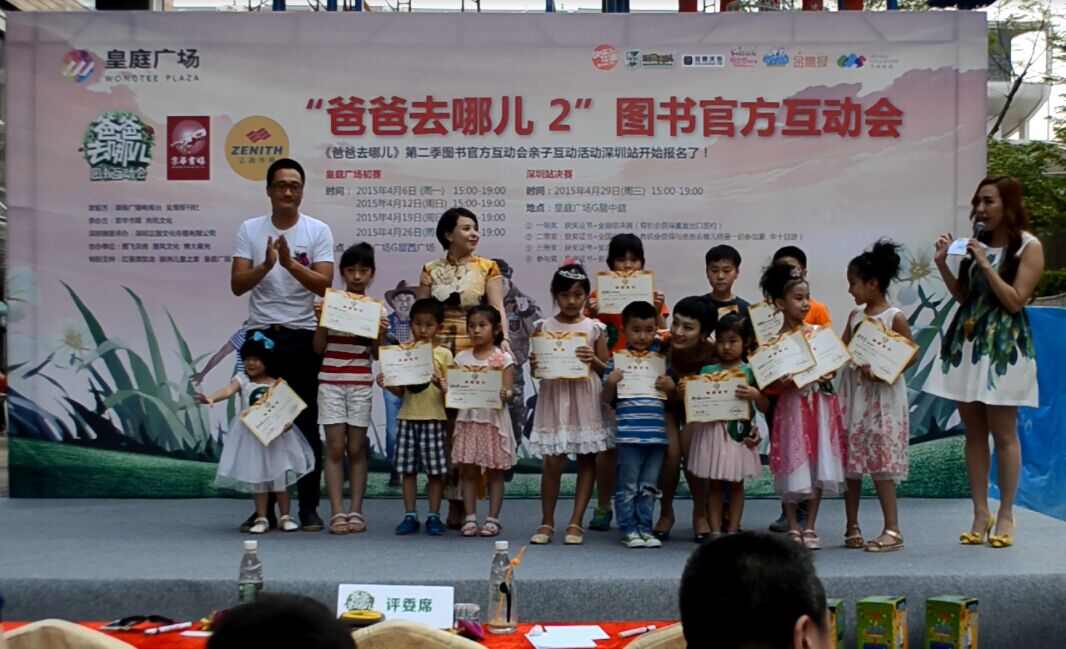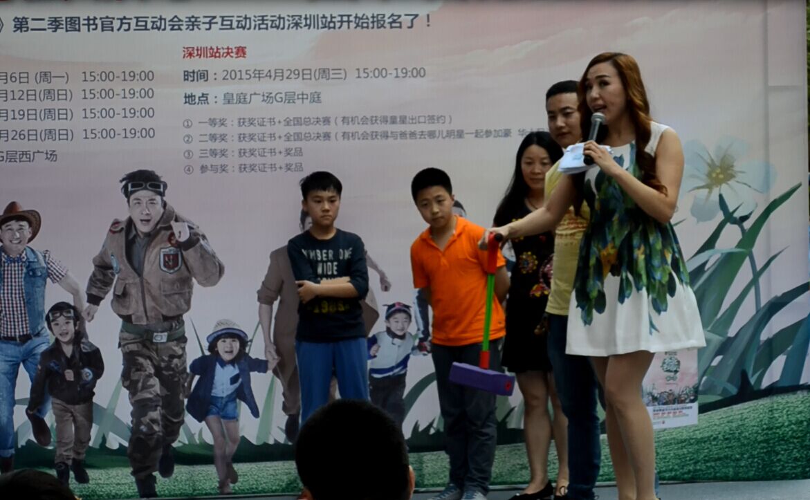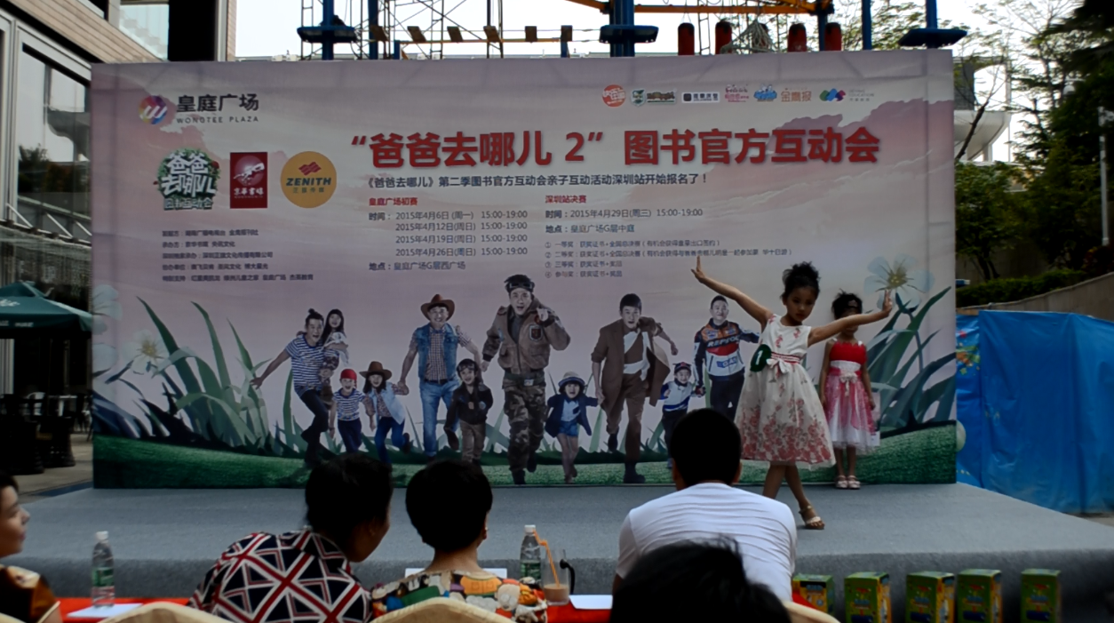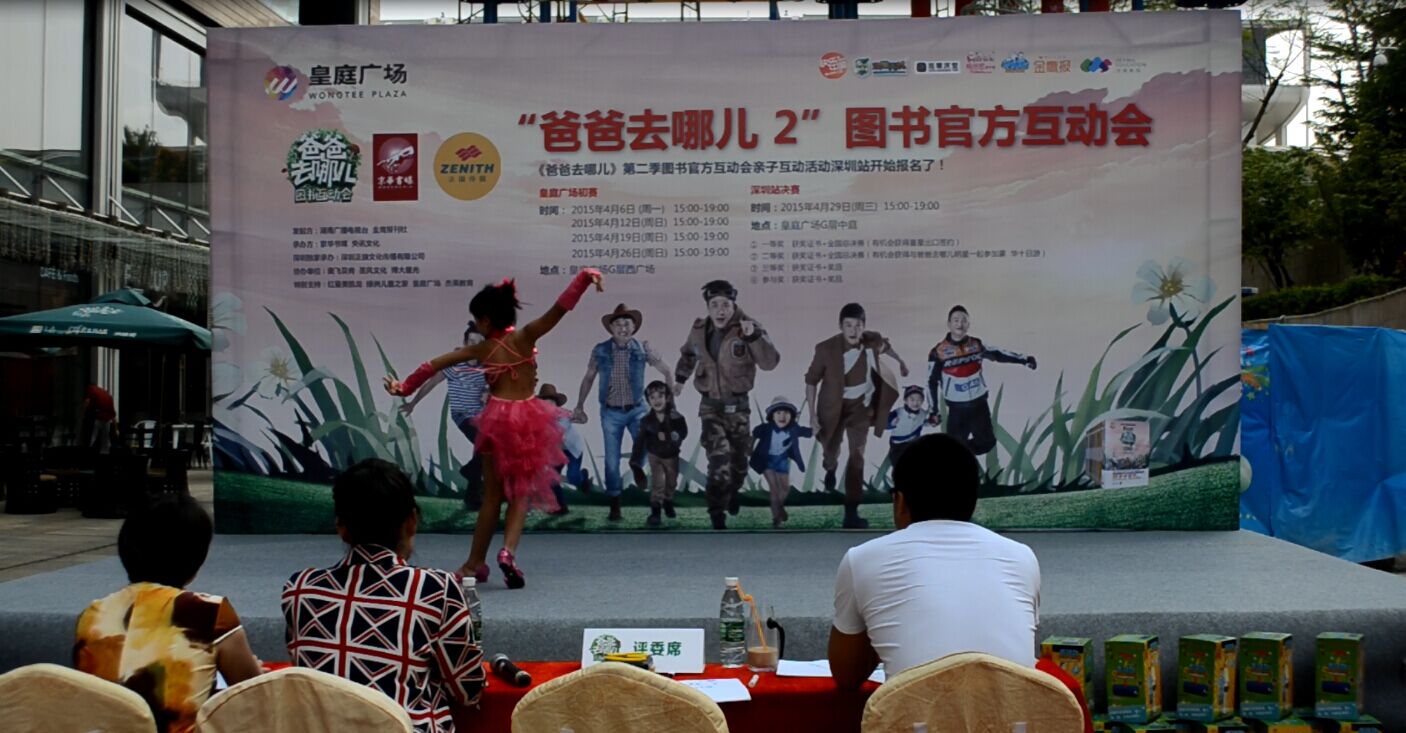 2015年4月6日,深圳福田。皇庭广场举办“爸爸去哪里2”图书官方互动会。线下海选活动!