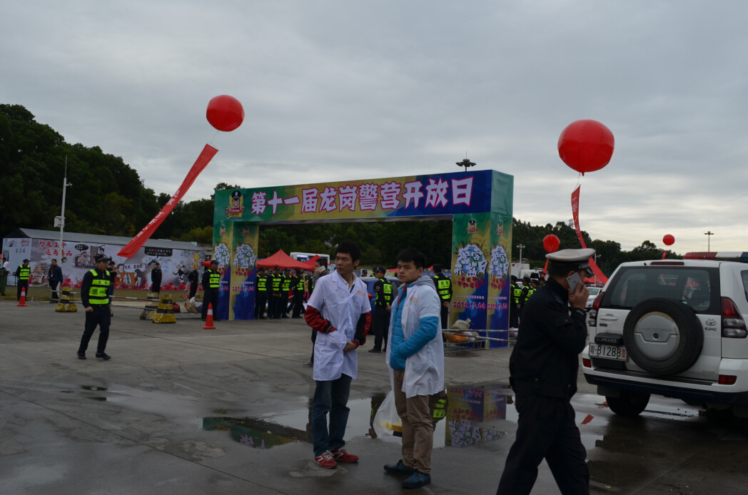 上午八九点左右,民警们开始在寒风中布置今天的展示场地。据龙岗警营指挥处的恽民警介绍,上一届的警营开放日活动共吸引了近6万市民参加,2015年为了能让更多的市民朋友参与到活动中来,龙岗分局的全体员工历时一个月精心策划全面宣传,将活动选址于龙岗区体育中心,所有活动在上一届的基础上进行了更大的升级。