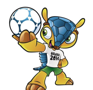 本届巴西世界杯的卡通吉祥物,是一只卡通造型犰狳“弗莱古”。犰狳是生活在巴西内陆地区的一个濒危物种,在感受到外部威胁时,犰狳会缩成一圈用甲壳保护自己,此时形态同足球相似,因此成为了世界杯吉祥物。