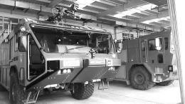 一旦火警警报响起,省民航机场管理局消防支队的专业消防人员可在两三分钟内迅速集结、整装出发。图为消防支队用于机场消防的特种车辆。 冷 雪摄