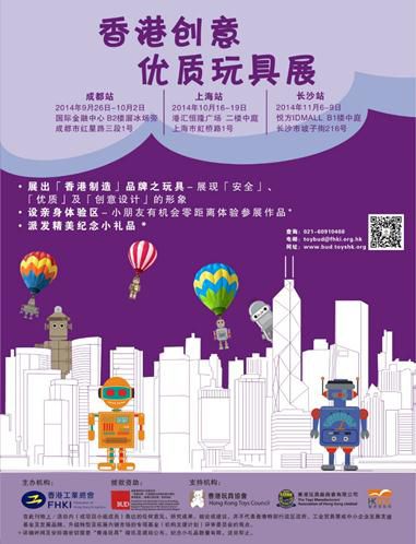 香港创意优质玩具展”已于9月26日至10月2日在成都国际金融中心展出,吸引大量市民到场参观,场面热闹。接下来10月16日至19日将会于上海的港汇恒隆广场二楼中庭举行,除了产品展示外,小朋友更可即场试玩参展作品。让内地消费者有机会增进对香港品牌的了解,同时体验「香港制造」玩具的“优质”、“安全”及“创意”。10月18日将举行隆重活动典礼,诚邀各界莅临参观指导。