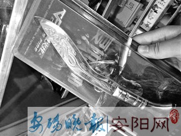 文具店内出售的一款“穿越火线”游戏中的刀具。(记者 郝亚伟 摄)
