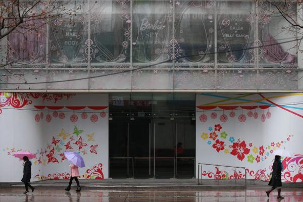 2014年2月18日,淮海中路黄陂南路至陕西南路段,一家商铺关门歇业。 澎湃新闻记者 张新燕 图