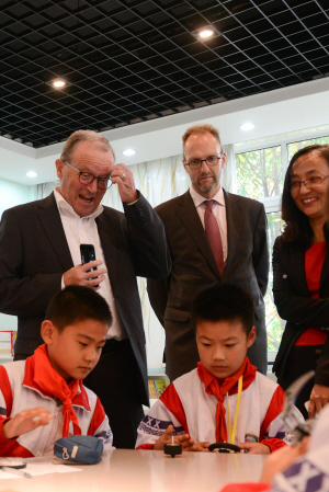 11月19日,丹麦乐高集团所有人、家族第三代科尔德·柯克·克里斯蒂森一行来到市实验小学东校区,观看孩子们用乐高玩具拼装出的各式中国传统玩具——陀螺,孩子们的创意让这位“世界玩具大王”惊叹不已。今年4月27日,乐高集团中国工厂落户嘉兴经济技术开发区。