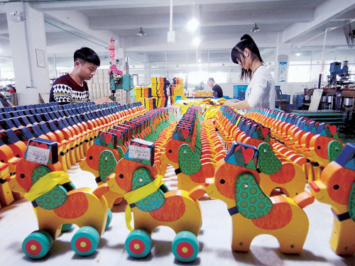 浙江台州一品工艺有限公司专业生产木制玩具和工艺品,产品型号近千种,远销欧洲和美国,深受客户信赖。公司通过了ISO9001质量管理体系和FSC森林等认证,并在关注产品质量的同时,积极开拓新市场,销售额逐年稳步且快速增长,年出口货值已超过500万美元。 张 敬 摄 《中国国门时报》