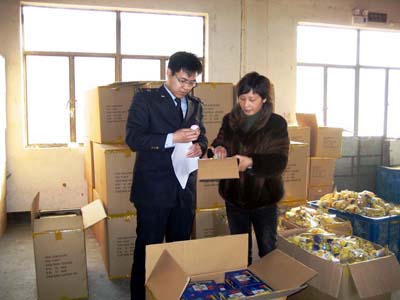 近日,美国、加拿大等国科学家向慈溪市润森工艺品有限公司订购了500万只塑胶玩具鸭子,玩具鸭将被用于研究南北极冰山消融流向等科研项目。据介绍,玩具鸭所使用的原材料均为医用级别PVC,产品中的增塑剂邻苯二甲酸盐和八大可迁移元素均远远低于美国和欧盟相关标准的指令要求。图为慈溪检验检疫局检验人员在对玩具鸭子进行现场抽样检验。王 维 摄 《中国国门时报》