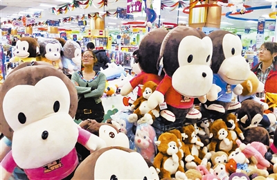 猴年吉祥物上市啦 萌态十足布绒玩具引市民选购