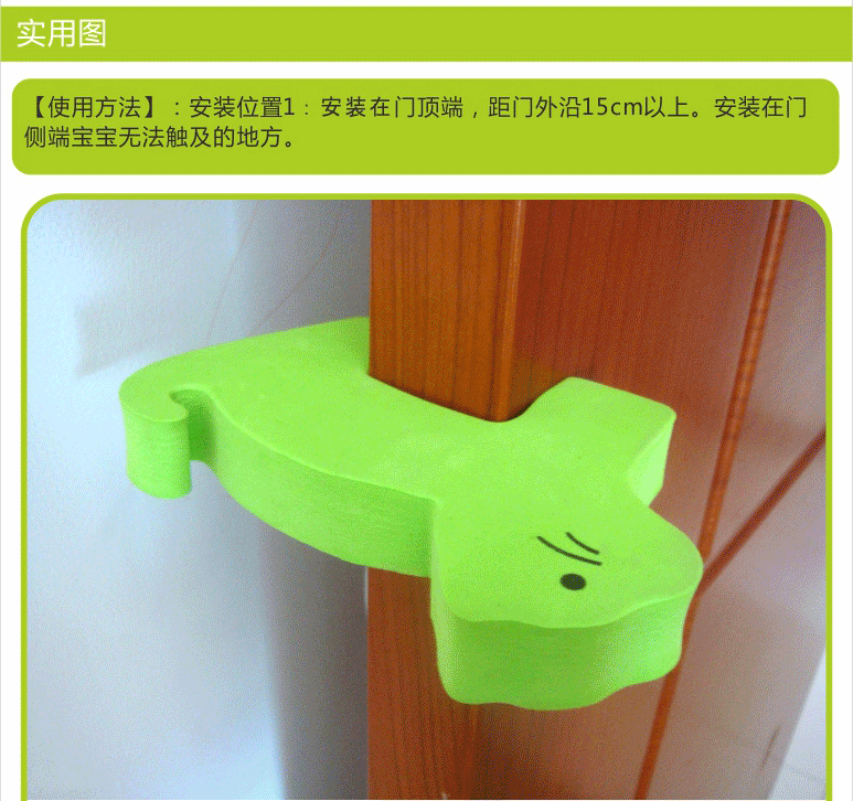 请安装在门顶端,距门外沿15cm以上;或安装在门正上方宝宝无法触及的地方,本品为预防安全隐患和降低伤害而设计。