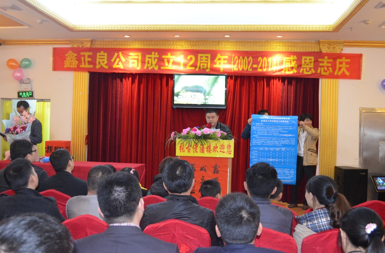 今天在座的除了鑫正良公司的员工外,基本上就是我们的客户朋友和供应商朋友,都是商业上的合作伙伴,在商言商,相信大家对2014年都有一个宏伟目标,让我们现在为各自的宏伟目标而一起努力加油吧!大家加油,加油,加加油!谢谢大家。